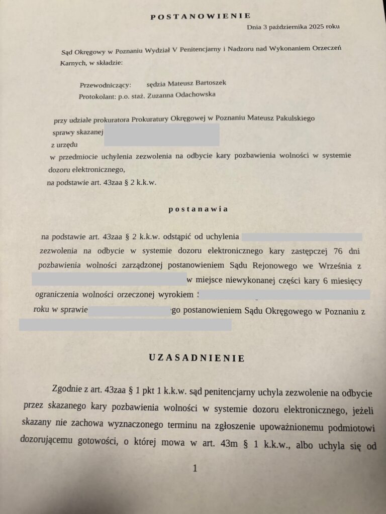 W efekcie, Sąd umorzył postępowanie, co oznacza, że nasza Klientka nadal może odbywać karę w systemie dozoru elektronicznego – w warunkach domowych, z możliwością kontynuowania pracy i utrzymywania kontaktu z rodziną.